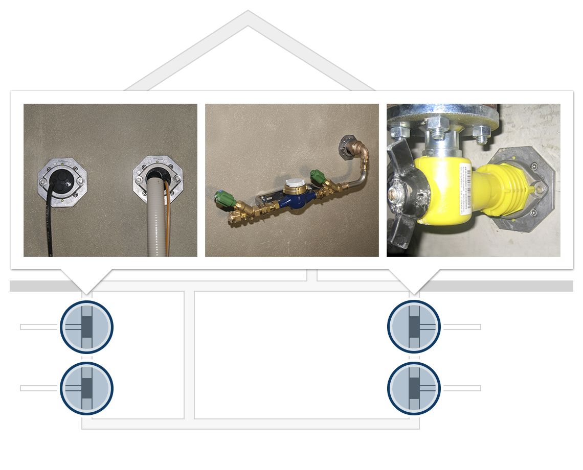 Pakket voor bouwmeesters als enkelvoudige huisinvoer voor de secties gas, water of stroom - bruikbaar in elk gangbaar wandtype.