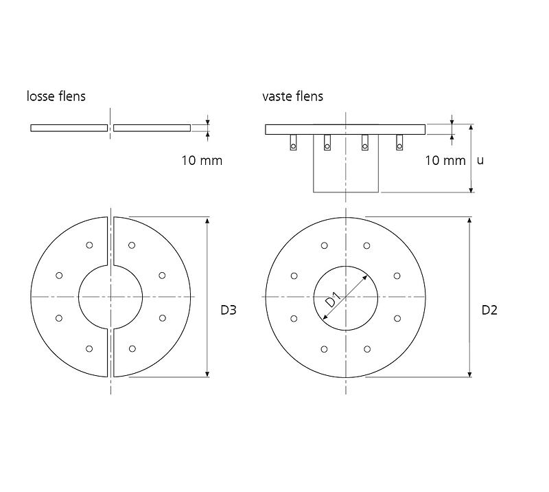 1) De losse flens wordt in gesplitste uitvoering geleverd.